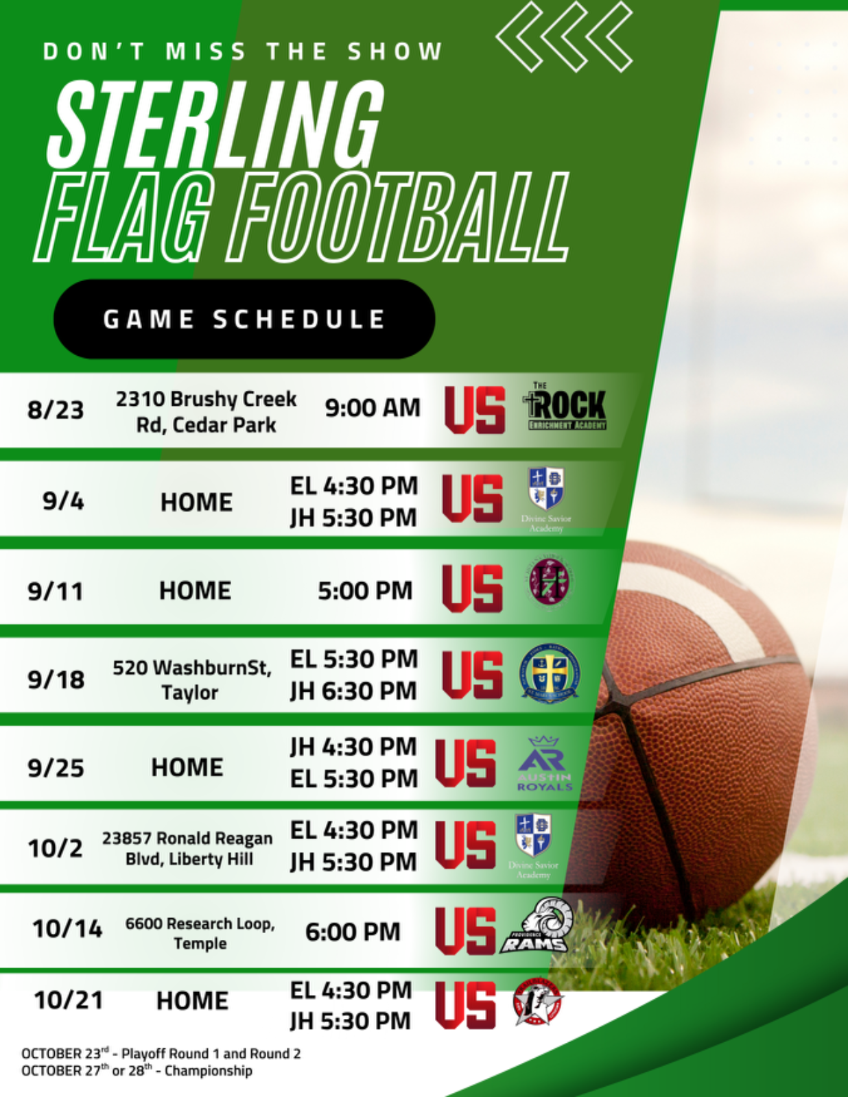 Sterling FALL 2025 Game Schedule